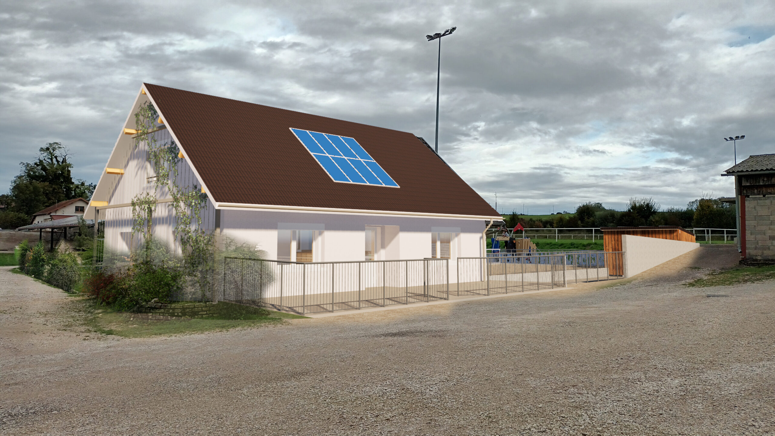 Une installation photovoltaïque de 3KWc sera installée sur le pan Sud de la toiture.